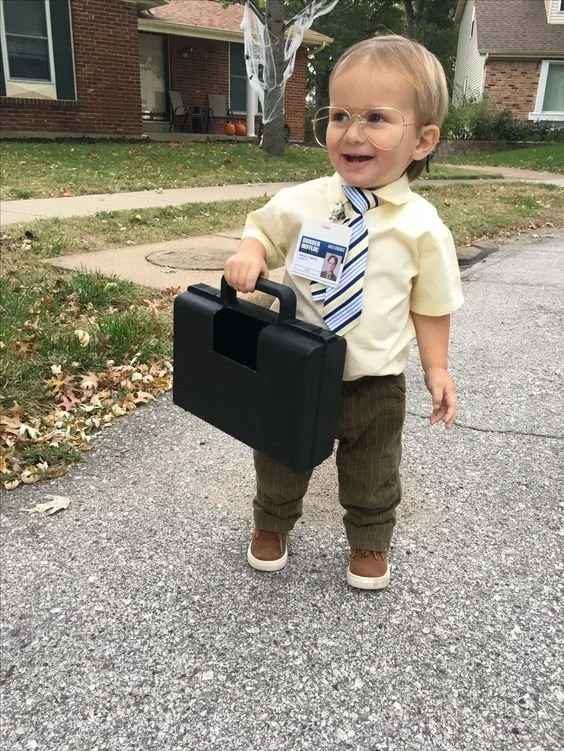 This costume will definitely get a lot of laughs from the adults on Halloween night. Have your kiddo dress up as Dwight from The Office. It doesn’t take much prep - just a button down, khaki pants, a tie, framed glasses and name tag, and you’ve got a mini Dwight to collect candy with.